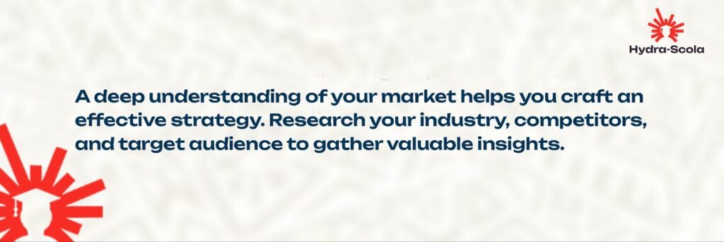A deep understanding of your market helps you craft an effective strategy. Research your industry, competitors, and target audience to gather valuable insights.