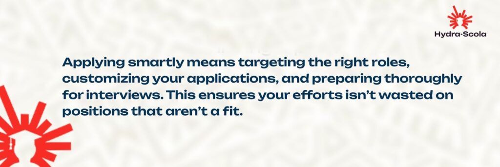 Applying smartly means targeting the right roles, customizing your applications, and preparing thoroughly for interviews. This ensures your effort isn’t wasted on positions that aren’t a fit.