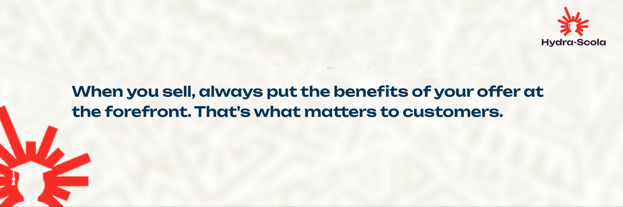When you sell, always put the benefits of your offer at the forefront. That’s what matters to customers.